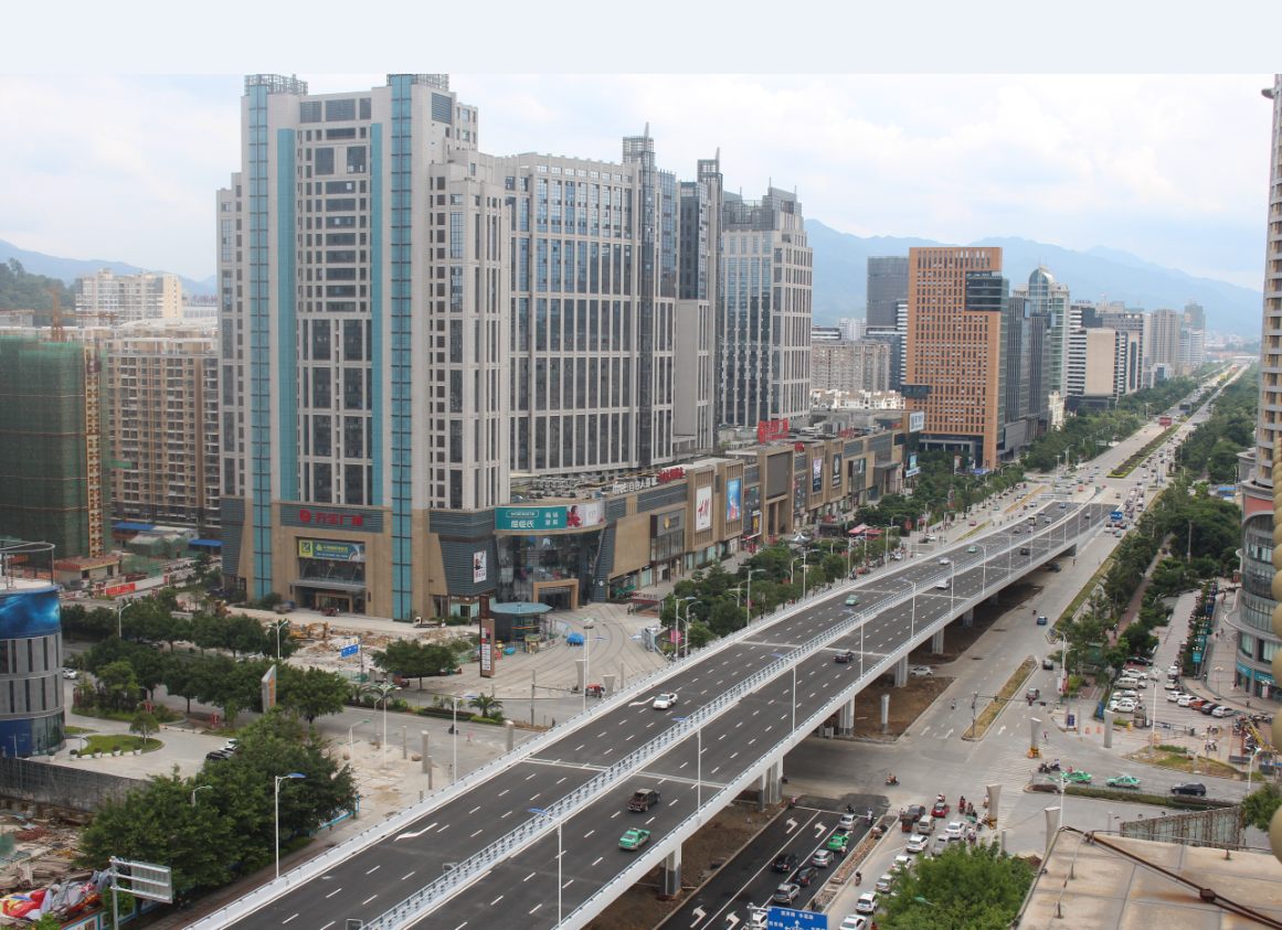 龍巖大道高架橋項目為省、市重點建設(shè)項目,是龍巖中心城市連接南北、溝通新老城區(qū)的重要樞紐,項目位于龍巖市南北交通中心軸和景觀軸線龍巖大道上,全長3395m,包含橋梁和地面道路兩大部分,其中橋梁工程總長2329m,橋?qū)?6m,包含一座190+150m獨塔斜拉索鋼箱梁主橋(主橋?qū)?6.3m),全線設(shè)計為雙向六車道,設(shè)計車速60km/h,在西陂路及人民路處各設(shè)置上下匝道,跨越雙洋路、羅龍東路、人民路、登高西路、西陂路城市主干道,項目總投資約24億元。